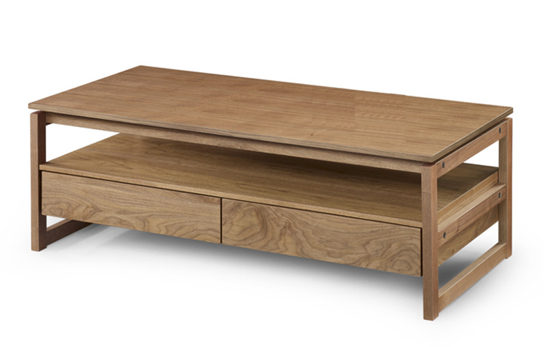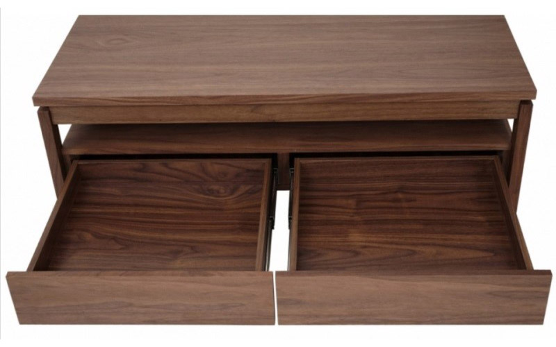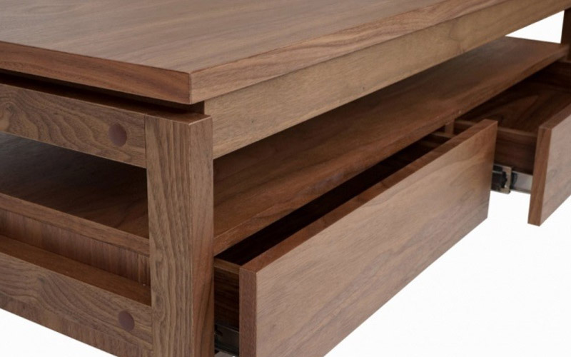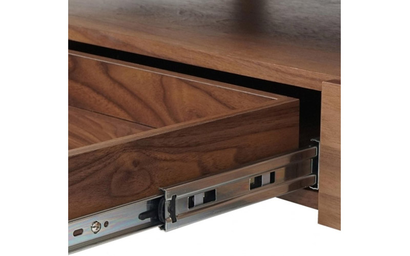 Walnut veneer on MDF or Oak veneer on MDF. Using full open rail, the drawer could be entirely opened.