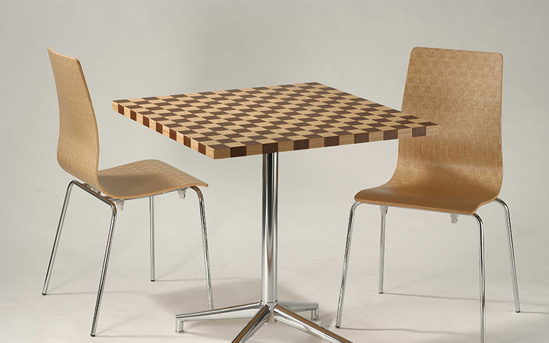 Design inspiration from water striders. Bentwood legs with walnut veneer on MDF.